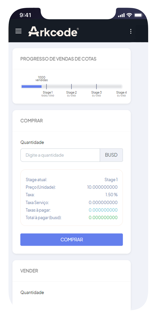 Plataforma para venda de cotas que representarão frações temporárias ou não de um empreendimento, cuja sua finalidade será a de gerar segurança e controle aos usuários sob as fases até o start do projeto e também de seus lucros pós lançamento.